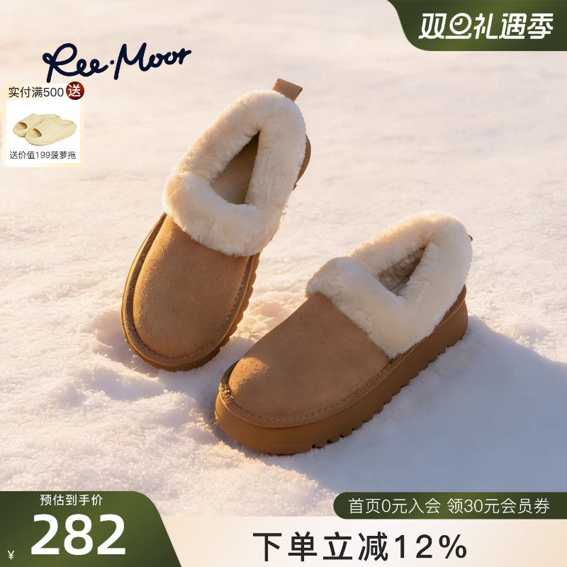 推荐:REEMOOR睿慕2025冬季新款厚底毛绒雪地靴女加绒保暖棉鞋短靴增高