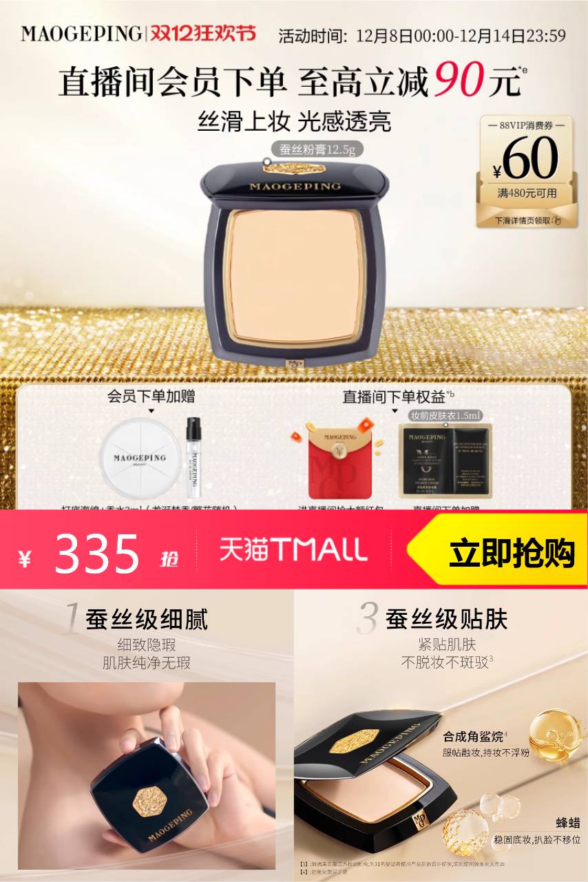 【官方立减52元,立减优惠38元,满99减5元,到手335元,叠加消费券到手301元左右】毛戈平凝脂新肌无痕粉膏粉底液,让你的肌肤瞬间焕发光彩!