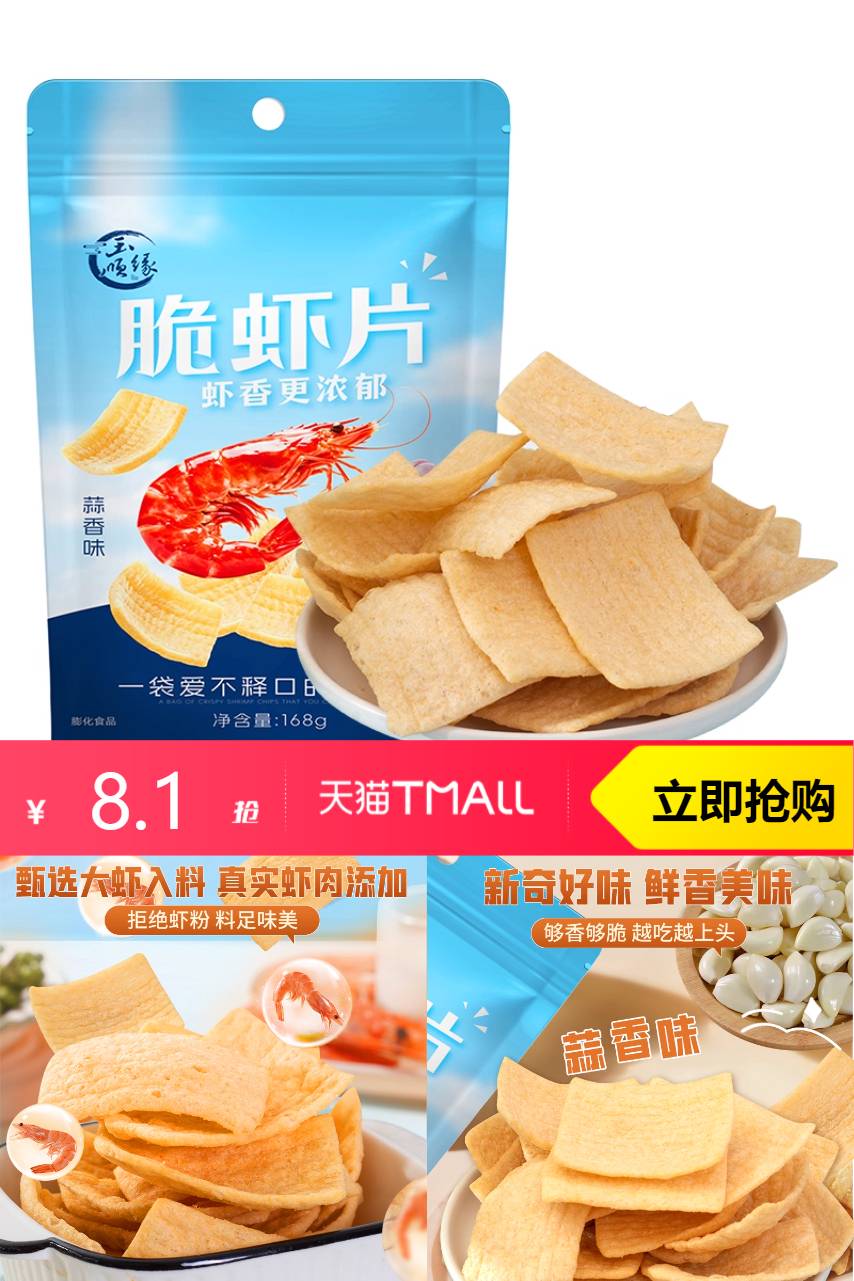 ⭕玉顺缘蒸汽虾片超大袋追剧必备168g*1