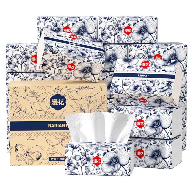 漫花中国风可湿水抽纸大包抽纸巾餐巾纸家用实惠装厕纸擦手卫生纸