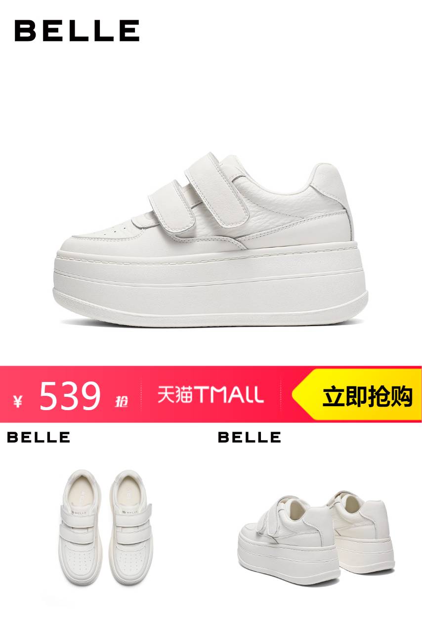【领60券+88vip+淘金币抵15元+消费券到手387】百丽简约魔术贴小白鞋女2026春新,干净利落魔术贴方便穿着,经典版型,修饰腿型百搭不挑人,稳健拔高塑造高挑身姿~