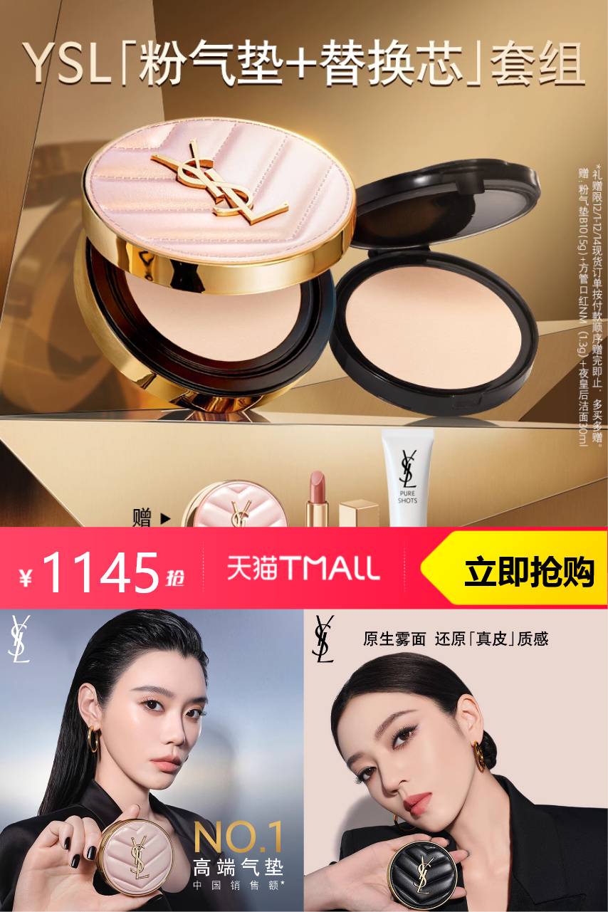 【【1】凑消费券2000-200,到手1030.5;【2】赠同款色号替换芯+粉气垫B10(5g)+方管口红NM(1.3g)+夜皇后洁面30ml】圣罗兰的明星气垫套装,真的是每个女孩的圣诞礼物!