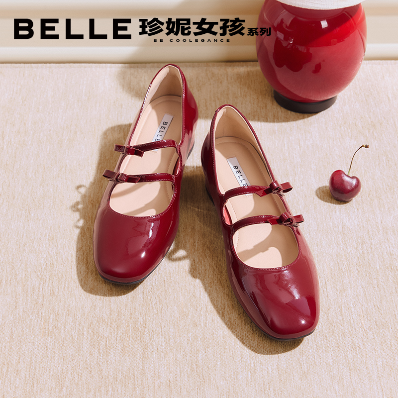 【领90券+88vip+淘金币抵24+消费券到手454】百丽真皮红色玛丽珍鞋2026春季新款,漆牛皮经特殊工艺鞣制呈现均匀深邃光泽,柔软贴合步履无束,每一面舒适从容~