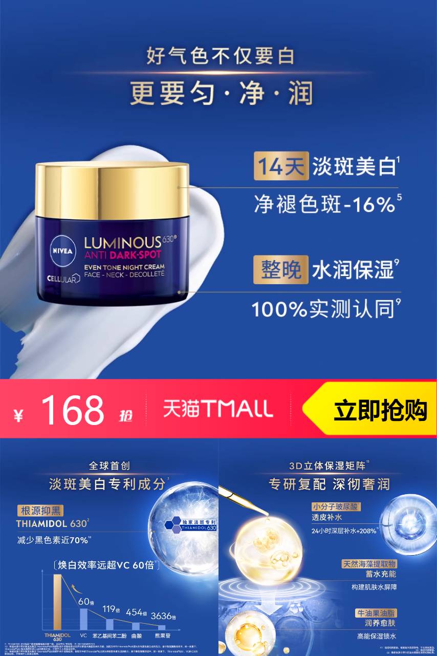 【淘金币抵6.18,凑消费券,88vip到手133.67元,赠紧致晚霜50ml+630美白精华30ml,折合66元1件晚霜】熬夜淡斑推荐——妮维雅630修护晚霜!肤色暗沉、色斑明显?这款晚霜淡斑焕白,修护保湿,王源同款配方,质地轻盈好吸收
