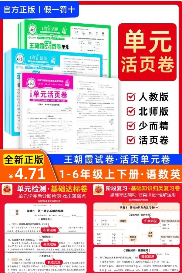 【官方立减1.19,再领4元优惠券,到手低至约4.7】2025上下册新王朝霞活页单元卷全套,一二三四五六年级上下册语数英,价格美丽,速度囤~