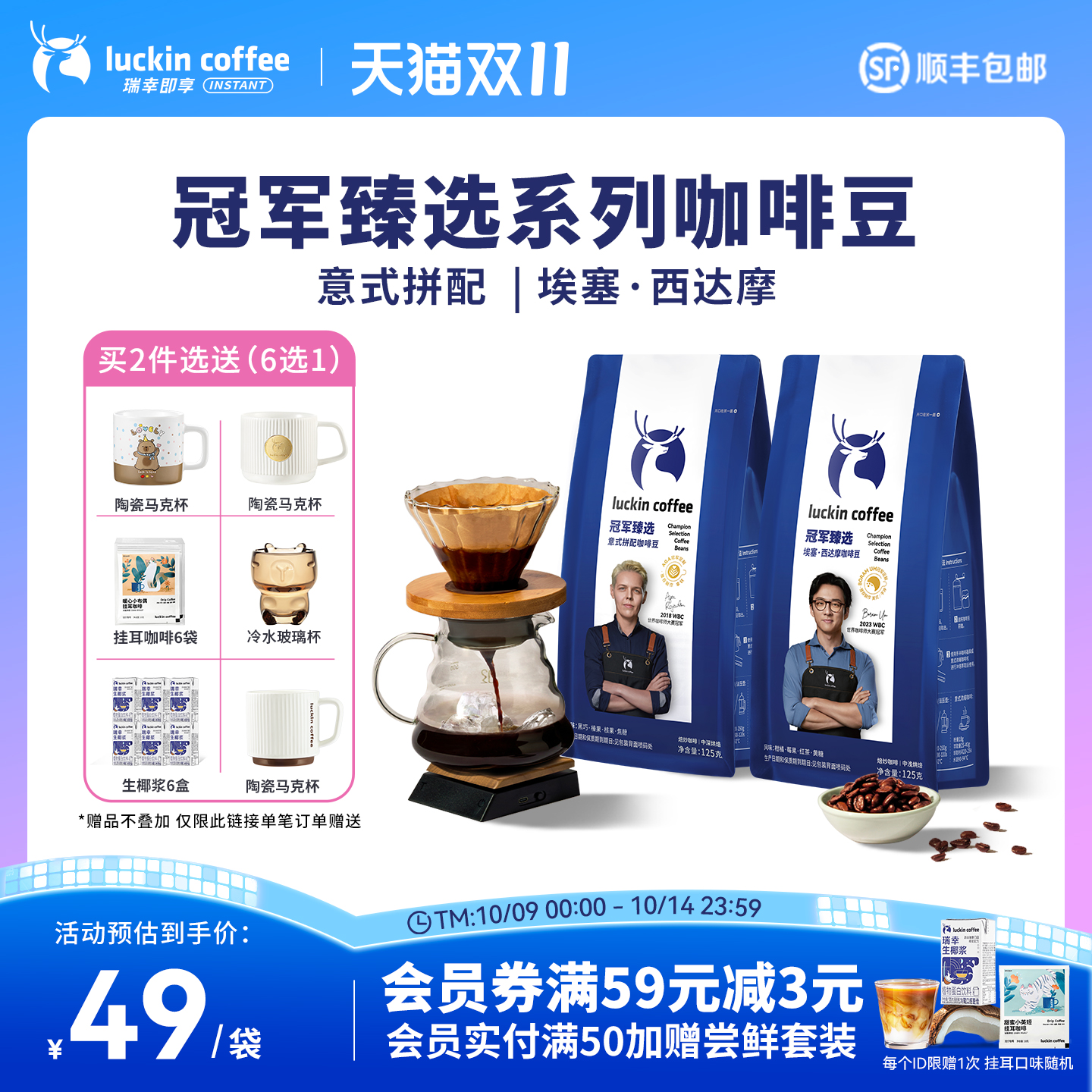 ⭕瑞幸咖啡意式埃塞西达摩拼配咖啡豆现磨手冲