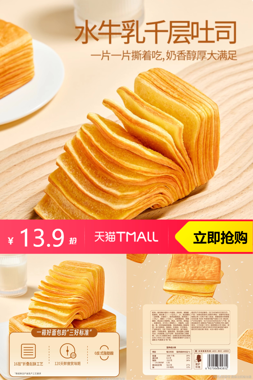 【88VIP减0.7,淘金币减0.6,到手12.6,叠加满49减5超市券,到手约10.23】营养丰富,健康美味。这款吐司不仅美味可口,而且富含蛋白质和多种维生素