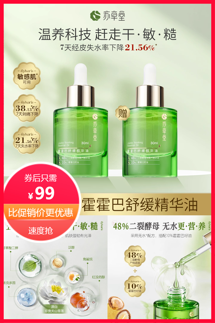 专为敏感肌定制!苏草堂舒缓泛红精油含积雪草+角鲨烷,温和以油养肤,缓解干痒泛红不刺激~高性价比精华油,干敏皮保湿修护一步到位!