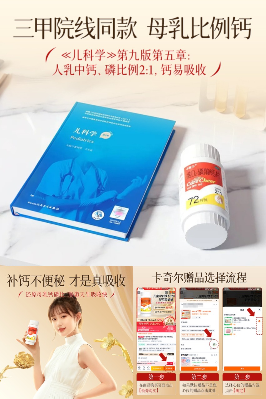 三甲院线同款,母乳比例钙,还原母乳钙磷比,肠道天生吸收快,钙磷2:1,温和不伤肠胃,咀嚼服用,不便秘,奶香入喉,更易吸收入骨,孕妈宝宝都爱的补钙好物~