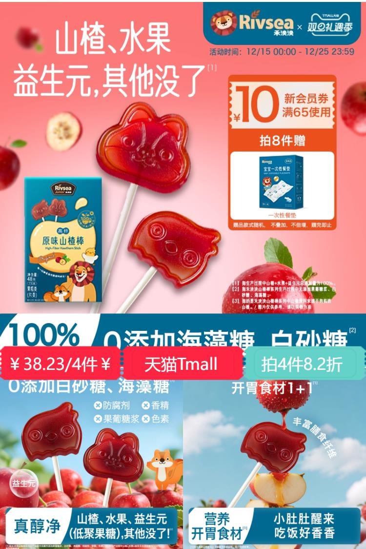 【禾泱泱山楂棒4件82折,官方立减12%,88VIP折38.23元,满200减25元】禾泱泱山楂棒配料干净,安心看得见,营养开胃食材,丰富膳食纤维,组合套装更优惠。