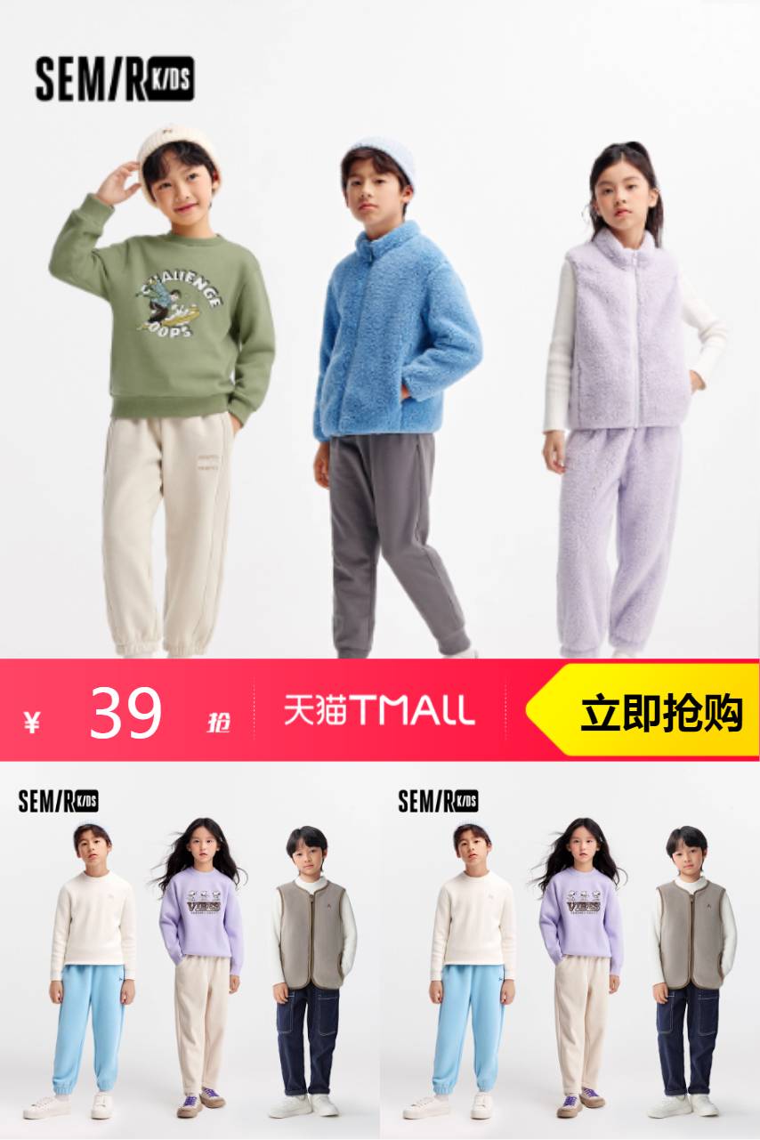【淘金币抵4.08,裤装到手34.9元,卫衣到手44.5元】森马儿童特卖任选39起,舒适保暖。