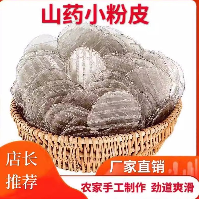 简单易做且味道鲜美,粉皮晶莹,透亮有光泽纯正山药粉皮,口感更劲道~山药小粉皮农家手工制作,拒绝添加剂,贴心小尺寸,食用时无需切割,方便!