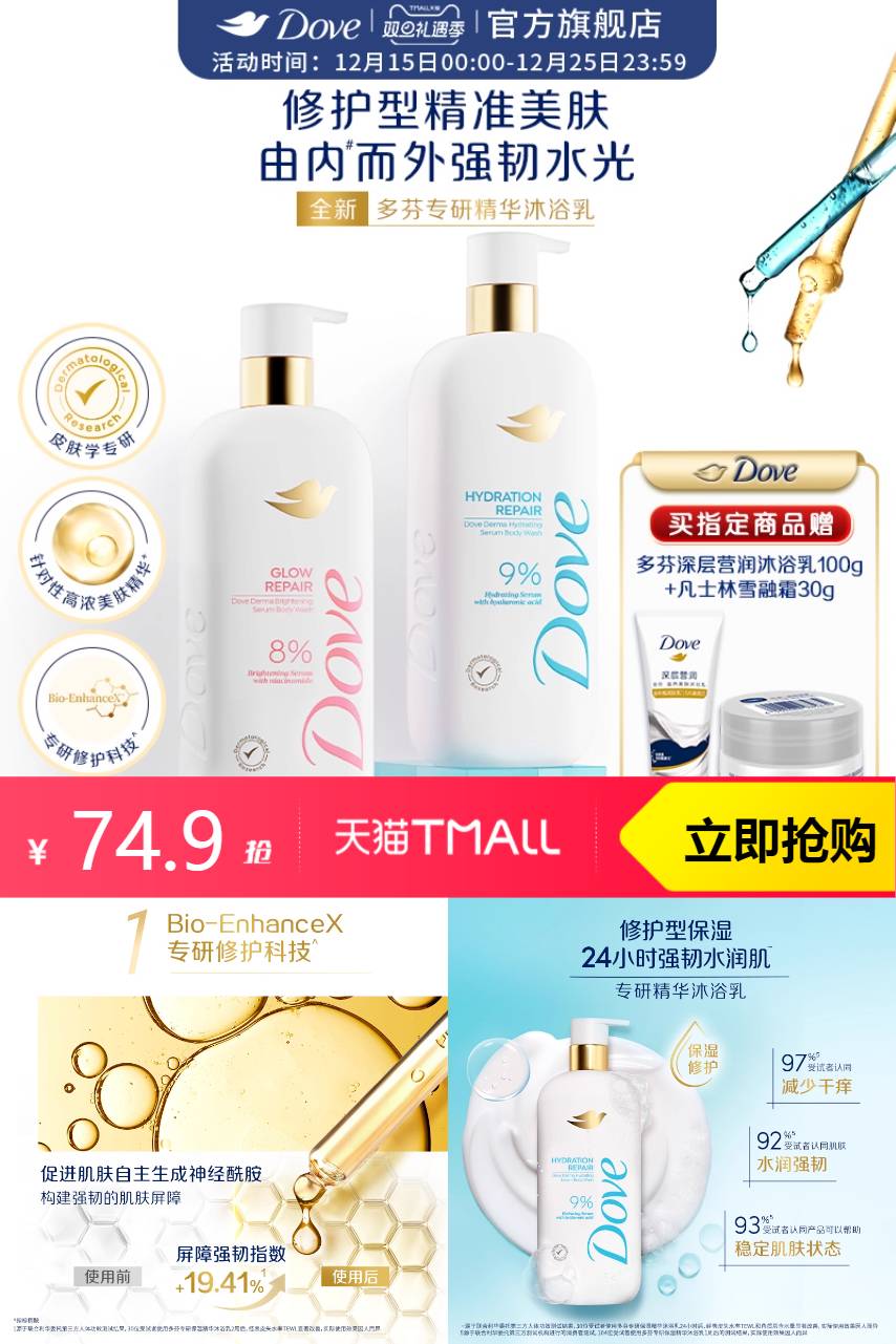 多芬 多芬专研保湿焕亮精华修护沐浴乳500g 79元减20 商品纠错