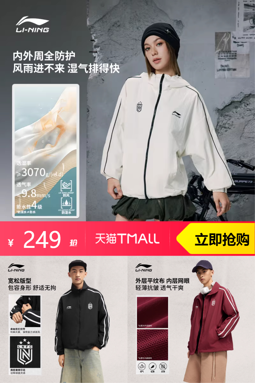 ⭕李宁外套男春季情侣复古球迷立领夹克