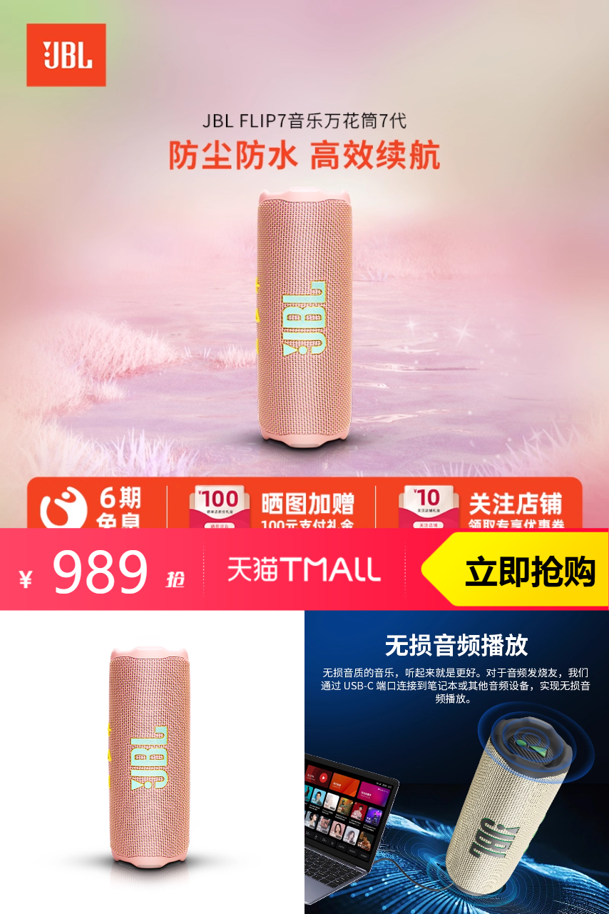 JBL JBL万花筒7代无线蓝牙音箱便携低音炮 1299元减310 商品纠错
