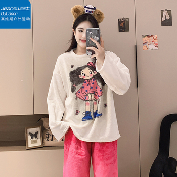 真维斯户外运动爆款法兰绒秋冬女士卡通学生加厚可爱长袖睡衣套装