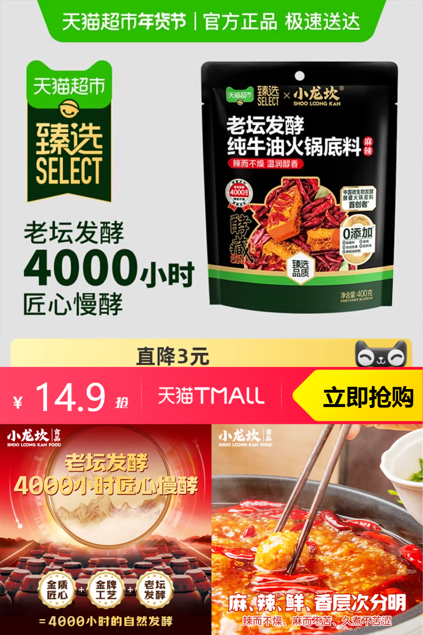 推荐:小龙坎老坛发酵纯牛油火锅底料400g