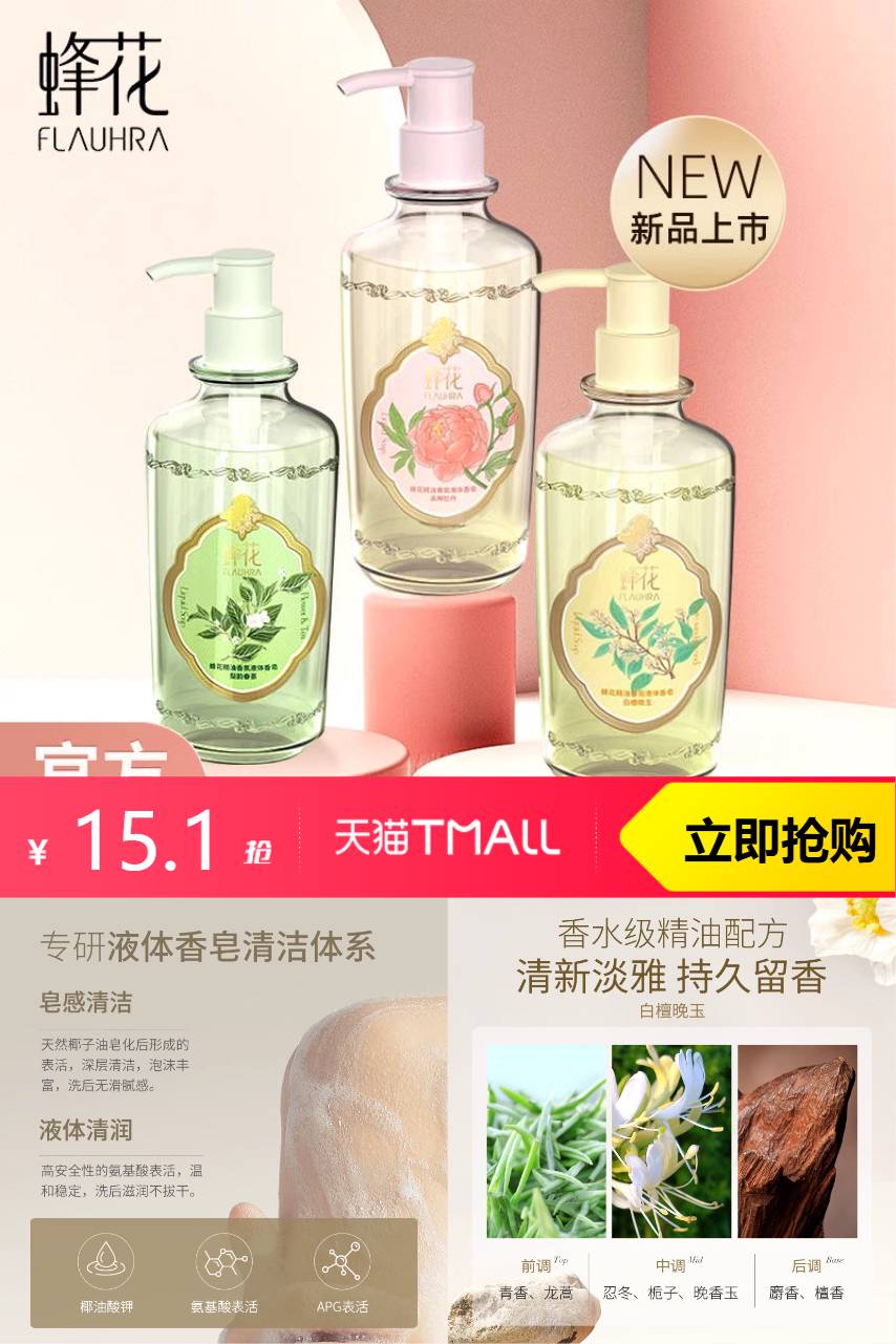 【淘金币0.39,叠88VIP双旦消费券200-25,到手12.94】蜂花精油香氛液体香皂沐浴露500g,天然椰子油皂化表活,深层清洁 洗后无滑腻,多种养护成分复配,洗后滋润不干~