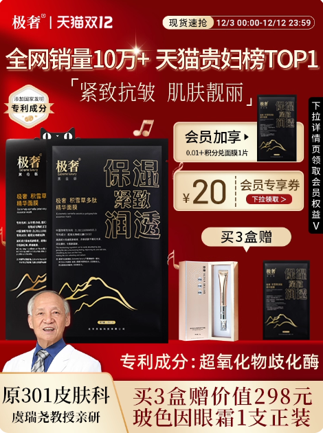 【原价100-立减20-淘金币0.6-首单3=到手76.4】【双12·抢先购】极奢补水保湿紧致抗皱淡纹润透积雪草面膜黑金版,超赞~