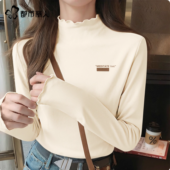 ⭕都市丽人新款花边加绒内搭德绒印花打底衫