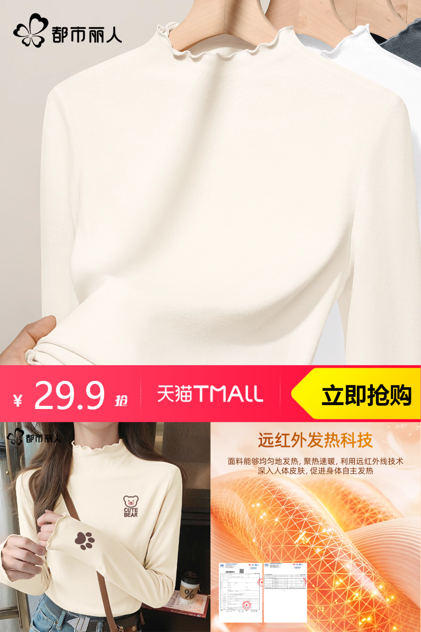 【淘金币抵扣1.19.到手28.71 !!!】这可是都市丽人!快薅! 都市丽人女装旗舰店•半高领打底衫合集 双面磨毛,软糯糯的手感! 贴身不紧身!套外套也舒服!