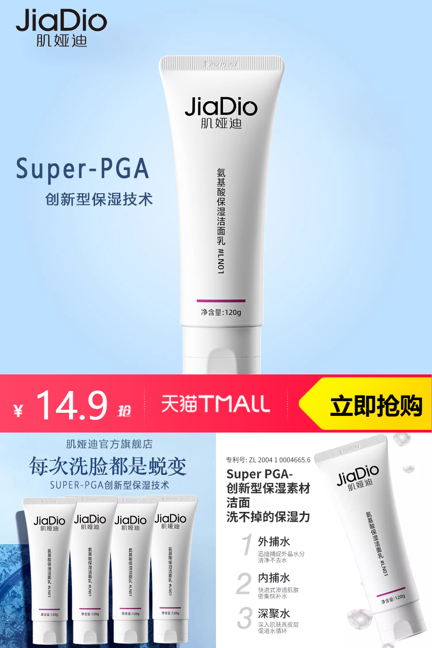 【拍中性的,淘金币抵扣0.4元,天降礼金5元,到手9.4元。】J肌娅迪洗面奶中性-油性肤肌专研120g,卸妆洁面,养肤合一~