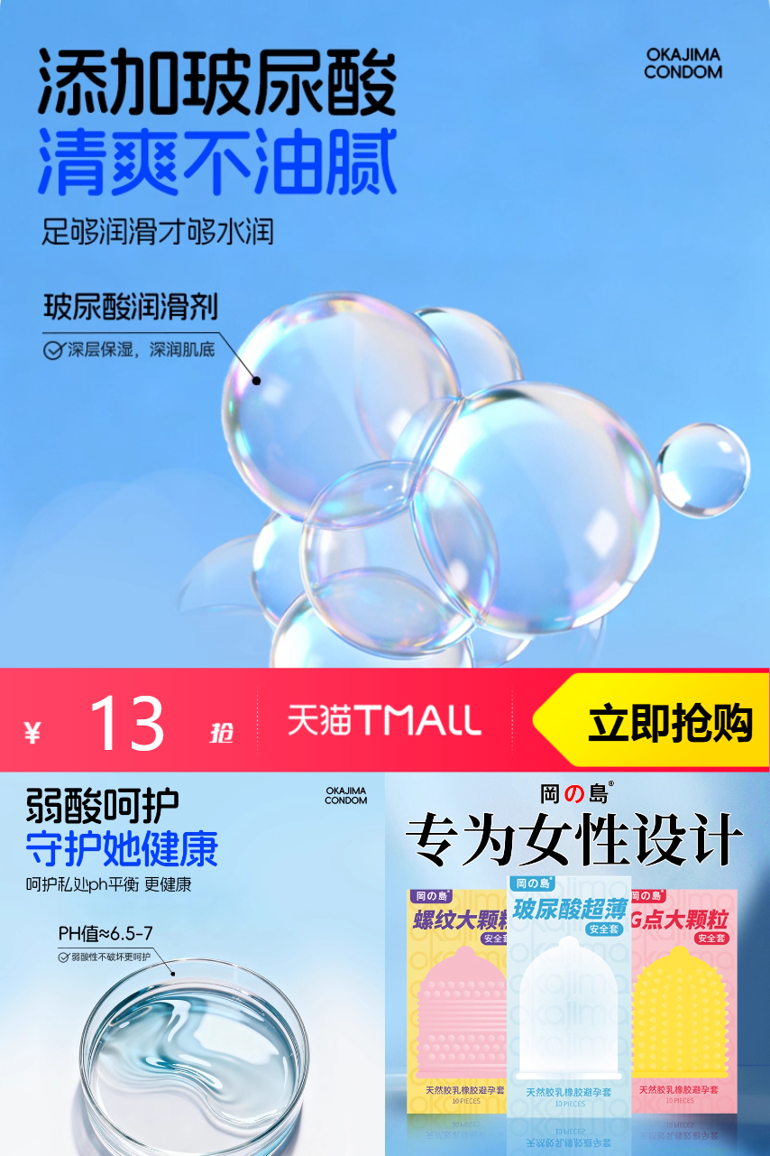 【淘金币抵扣0.6,下单即送6只,到手12.4/36只】冈岛热销|玻尿酸润滑,超薄贴合更敏感!螺纹颗粒加持,亲密加倍愉悦~