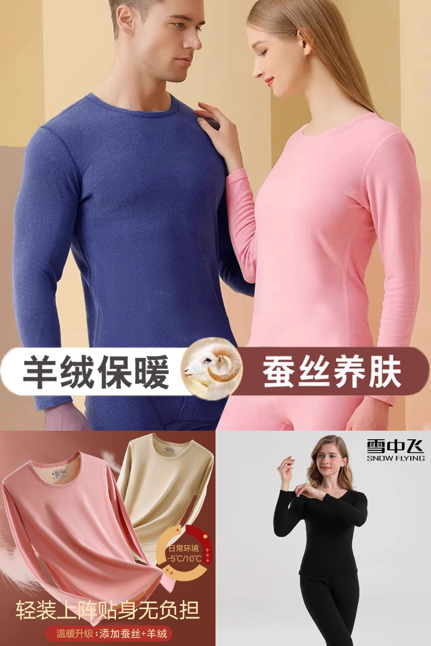 推荐:情侣款保暖内衣套装羊绒蚕丝双面磨毛2件套