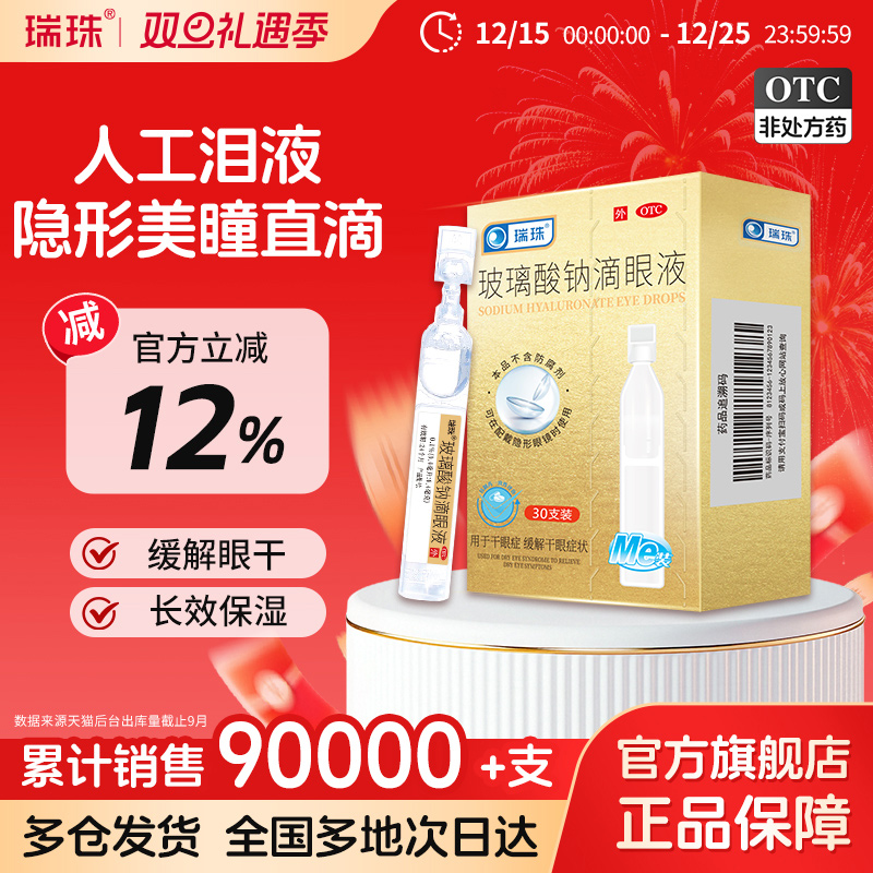 推荐:【瑞珠】玻璃酸钠滴眼液0.1%*0.4ml*30支/盒缓解眼疲劳干眼症润眼护眼一次性人工泪液