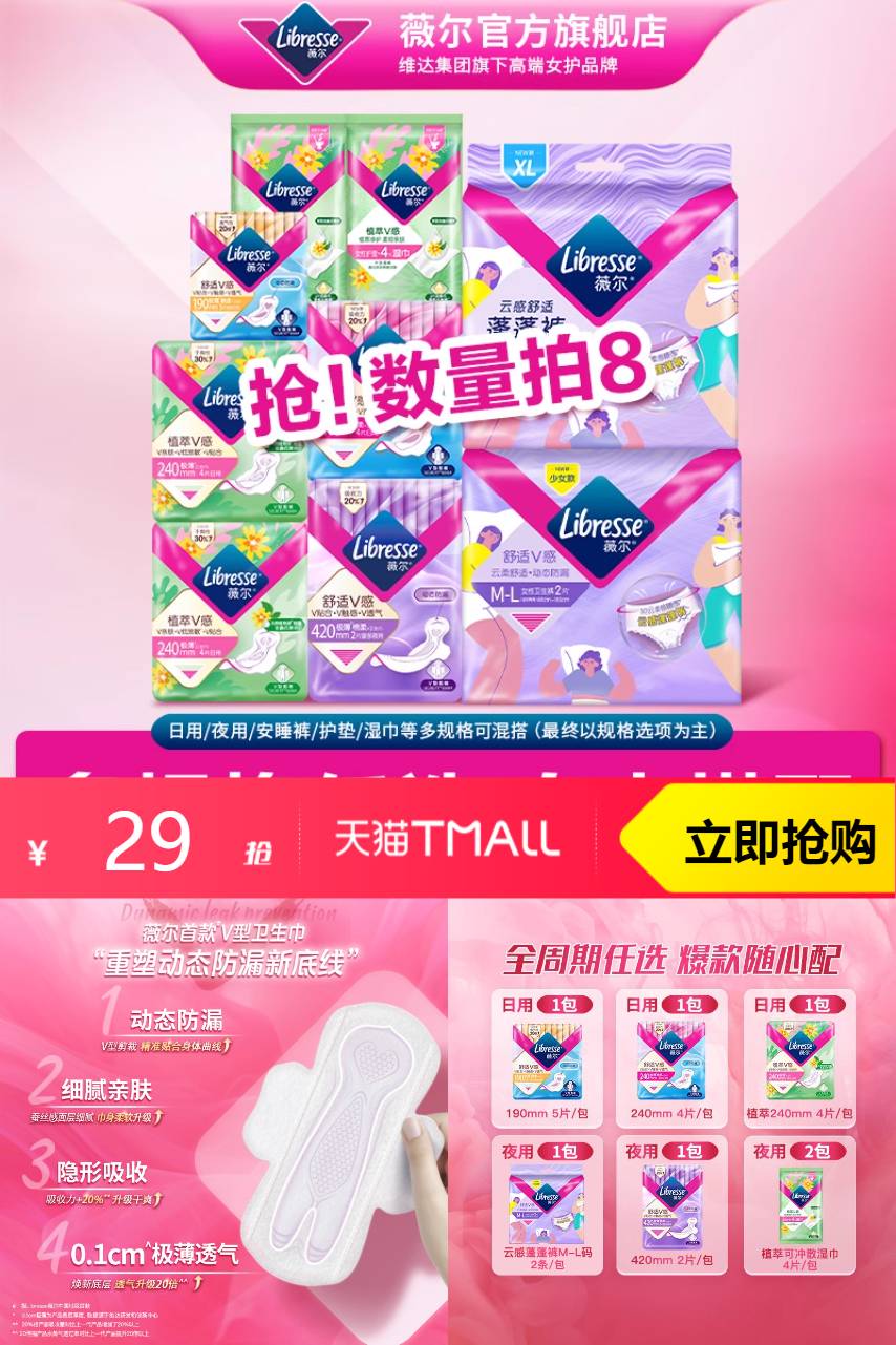 推荐:【任选8件】薇尔干爽舒适防漏护垫卫生巾