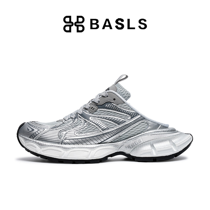 BASLS厚底银色老爹鞋男款2025新款秋冬新款休闲半拖鞋懒人一脚蹬