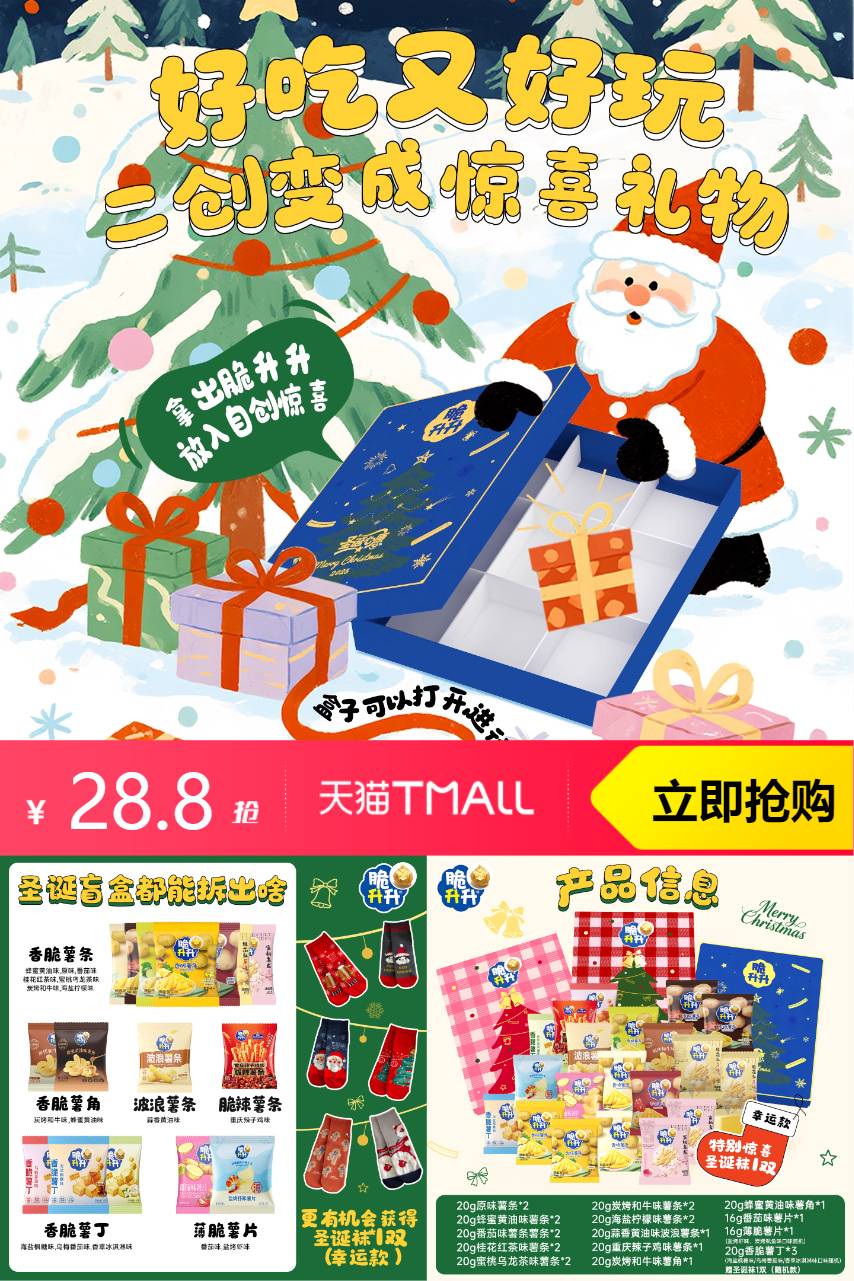 【淘金币抵扣3.65元, 凑消费券到手30.8元】脆升升圣诞心愿盲盒任选1,惊喜盲盒,解锁更多美味。