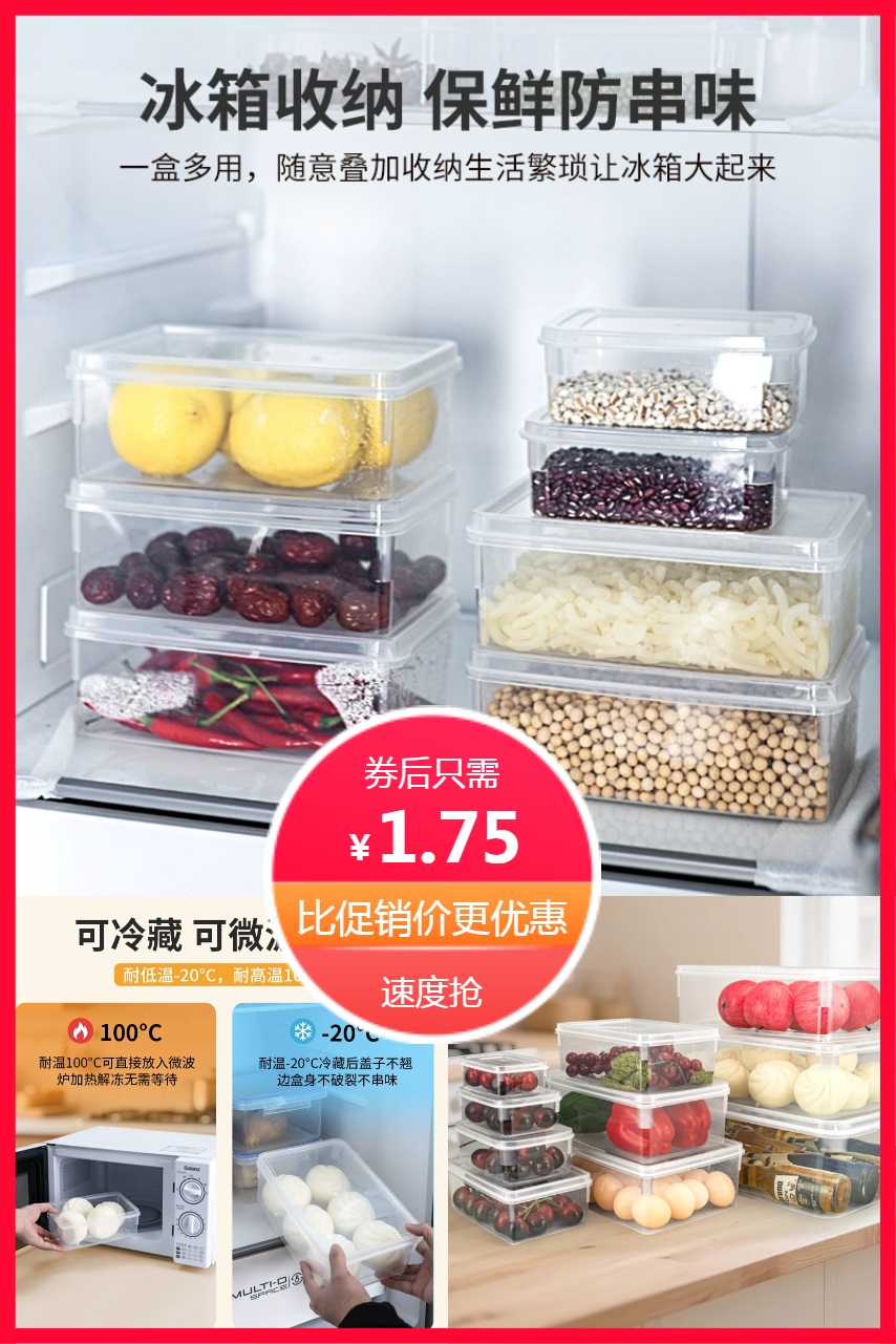 ⭕雅仕豪冰箱专用食品级带盖保鲜盒