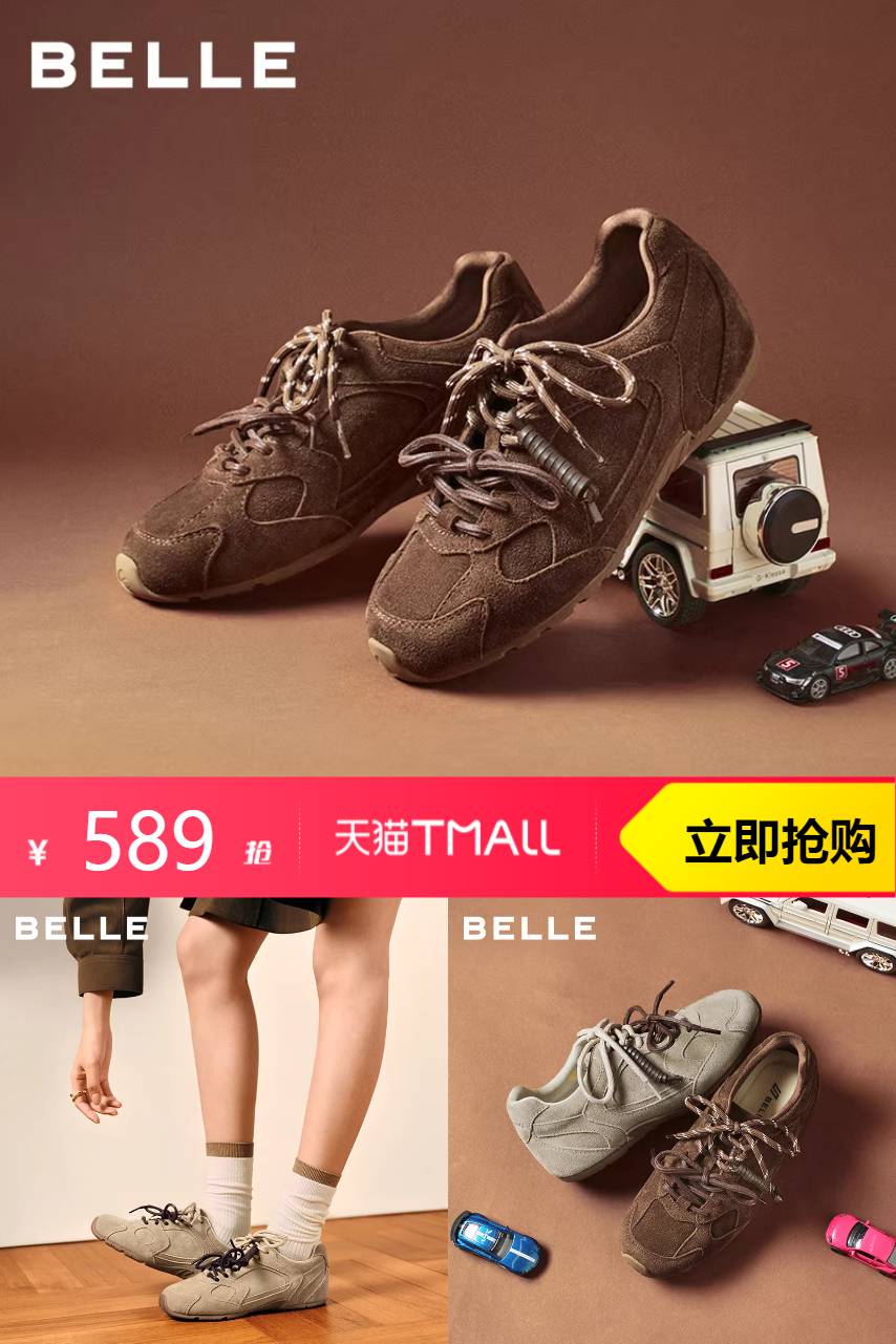 百丽 周雨彤同款百丽小榛果双鞋带薄底赛车鞋 909元减320 商品纠错