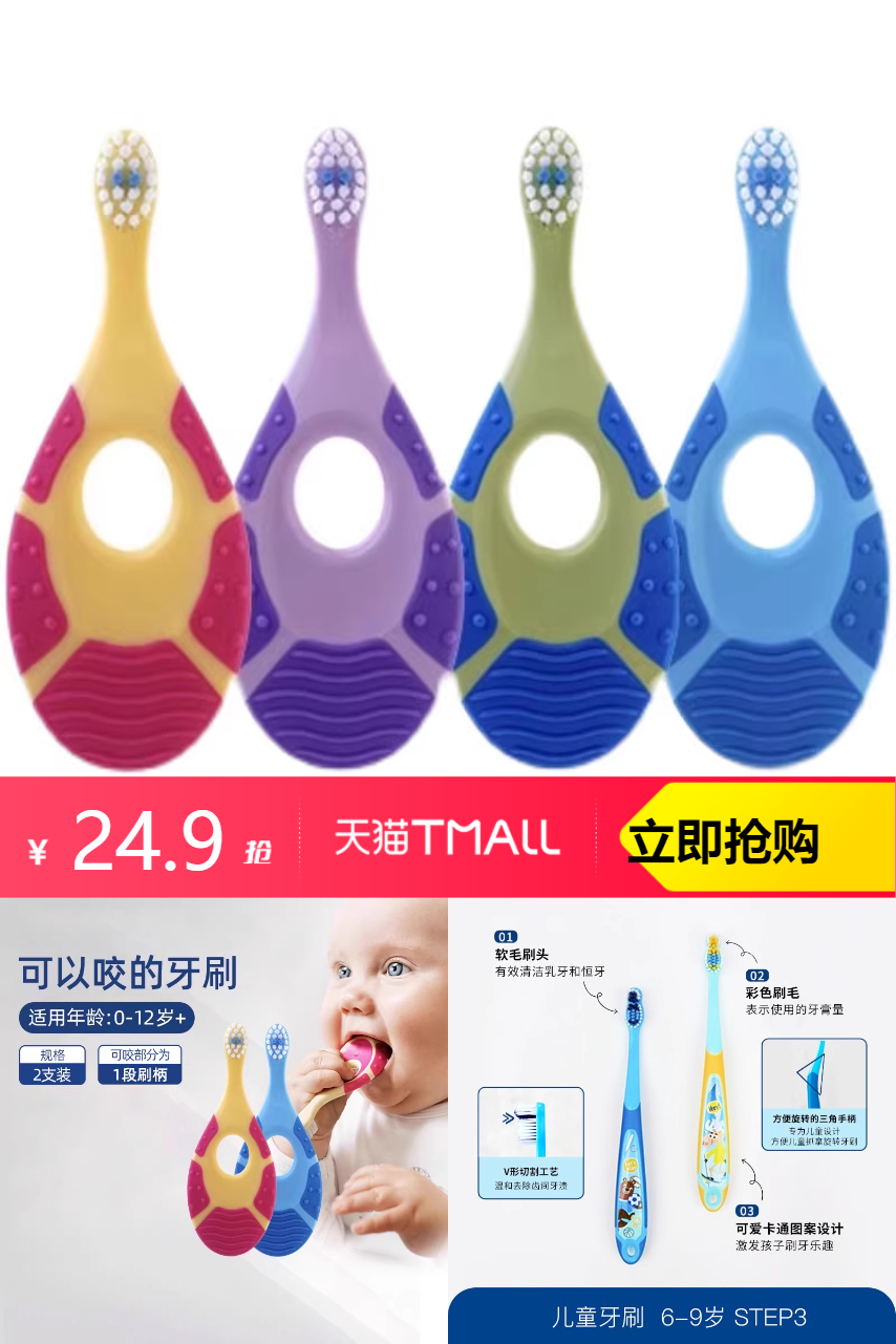 【立减4.3+淘金币1.05到手23.85+叠加消费券到手更优惠】0-12岁分段护齿,软毛设计,不伤宝宝牙龈。2支装,囤货超方便,让宝宝从小养成刷牙好习惯。