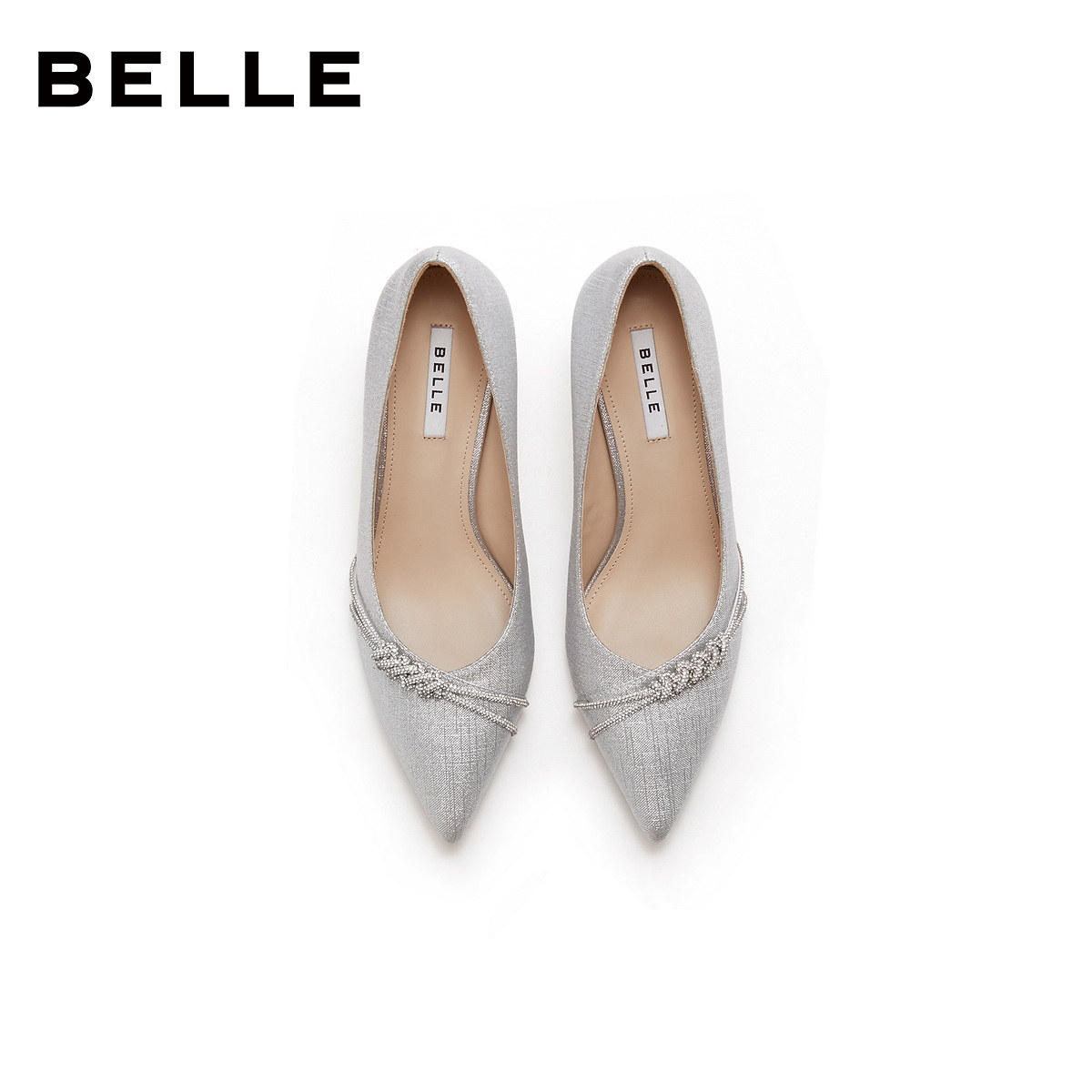 【领90券+88vip+淘金币+消费券到手532】百丽水钻高跟浅口单鞋女2026春季新款,尖头设计,彰显优雅女神气质,舒适软糯,穿着清爽透气~