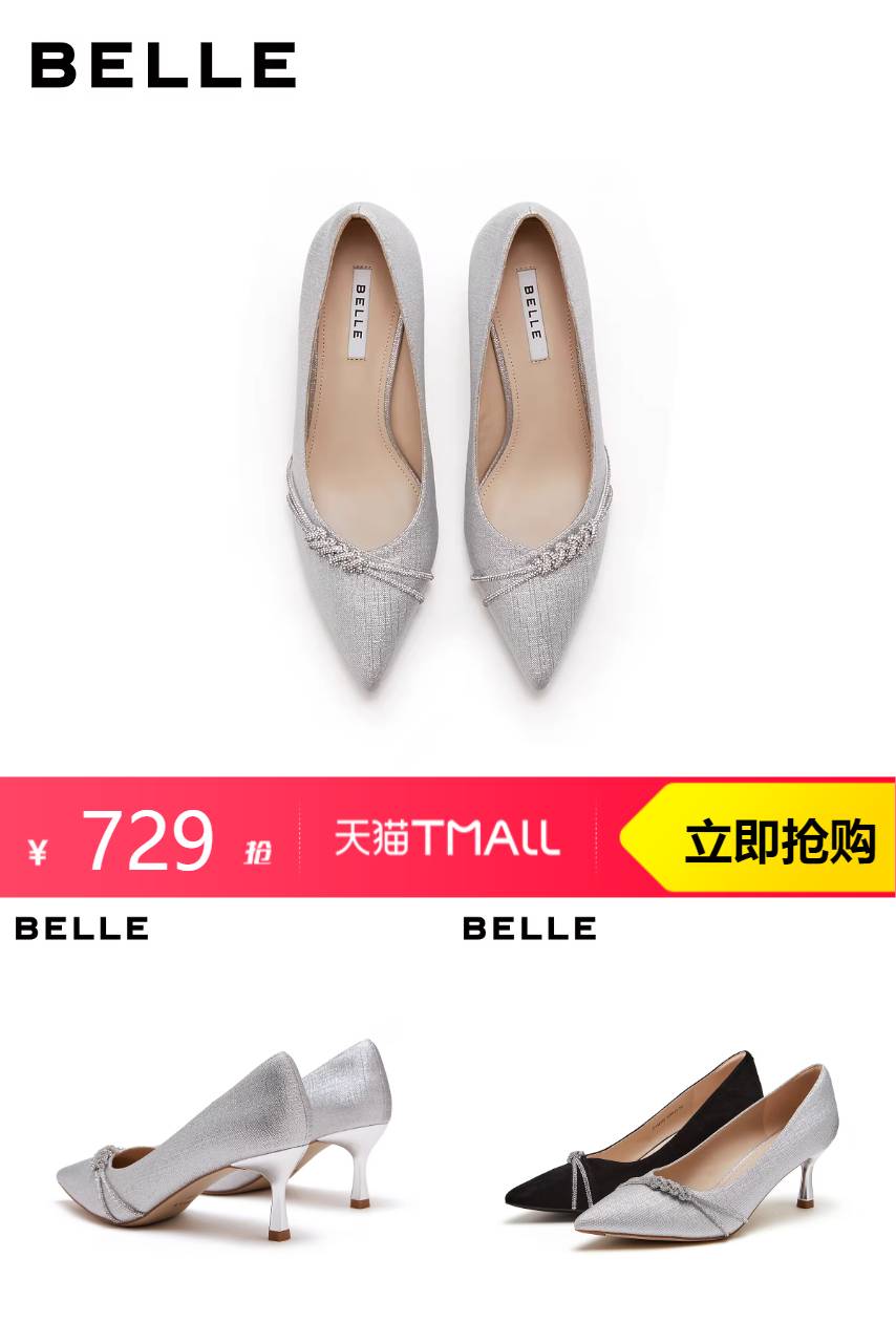 百丽 百丽水钻高跟浅口单鞋女2026春季新款 909元减180 商品纠错
