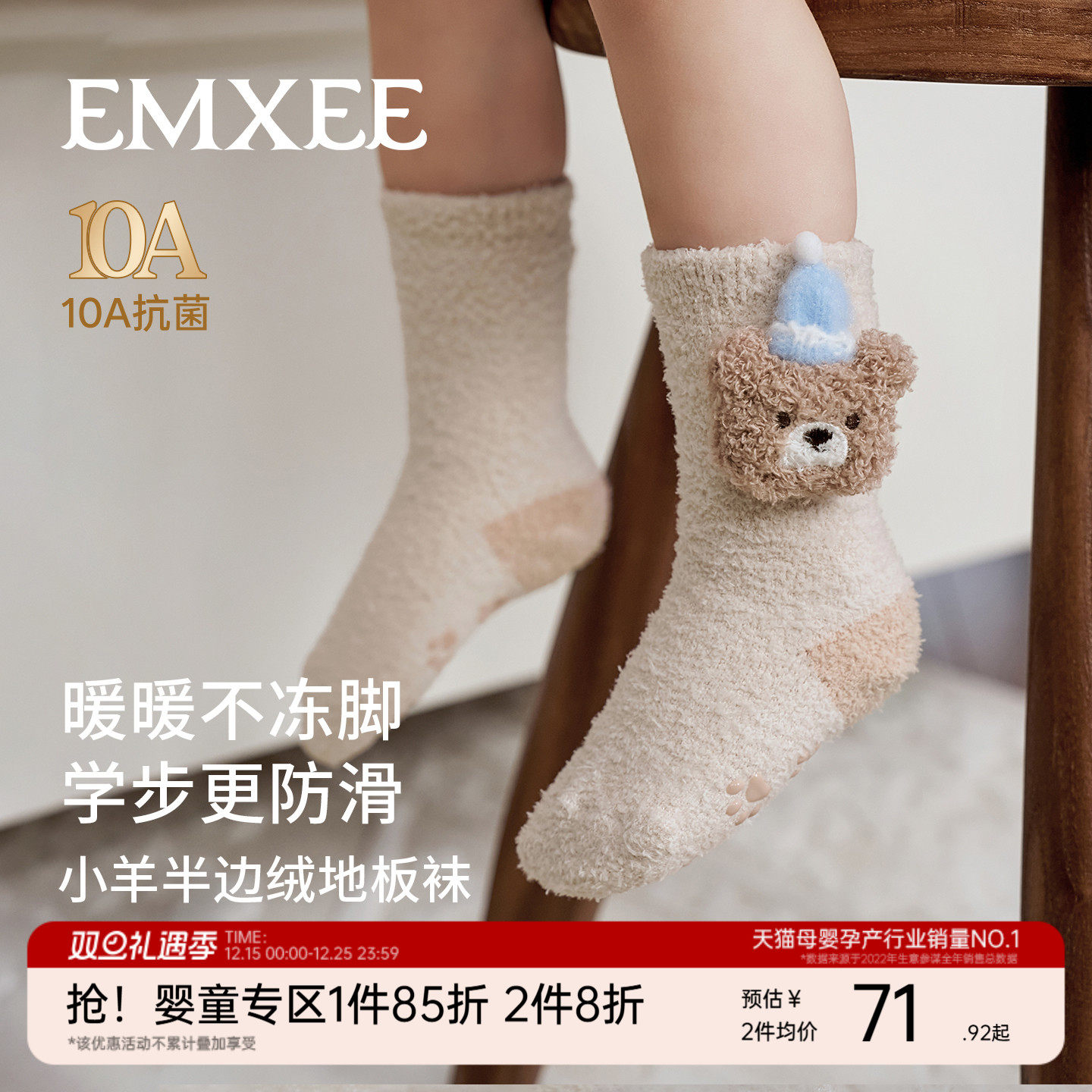 【新品】嫚熙婴儿半边绒地板袜秋冬男女儿童宝宝小月龄卡通袜子