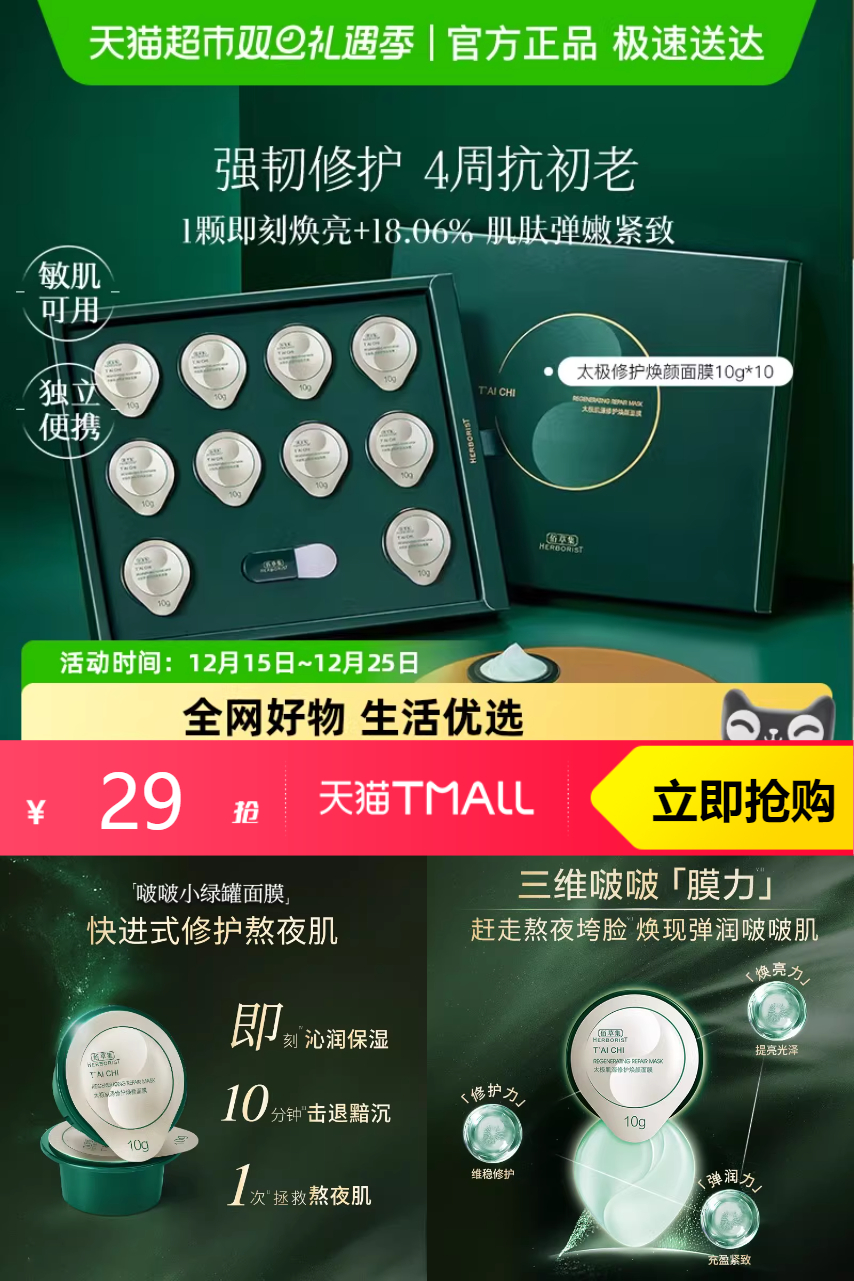 推荐:佰草集太极小绿罐涂抹面膜10g*10颗