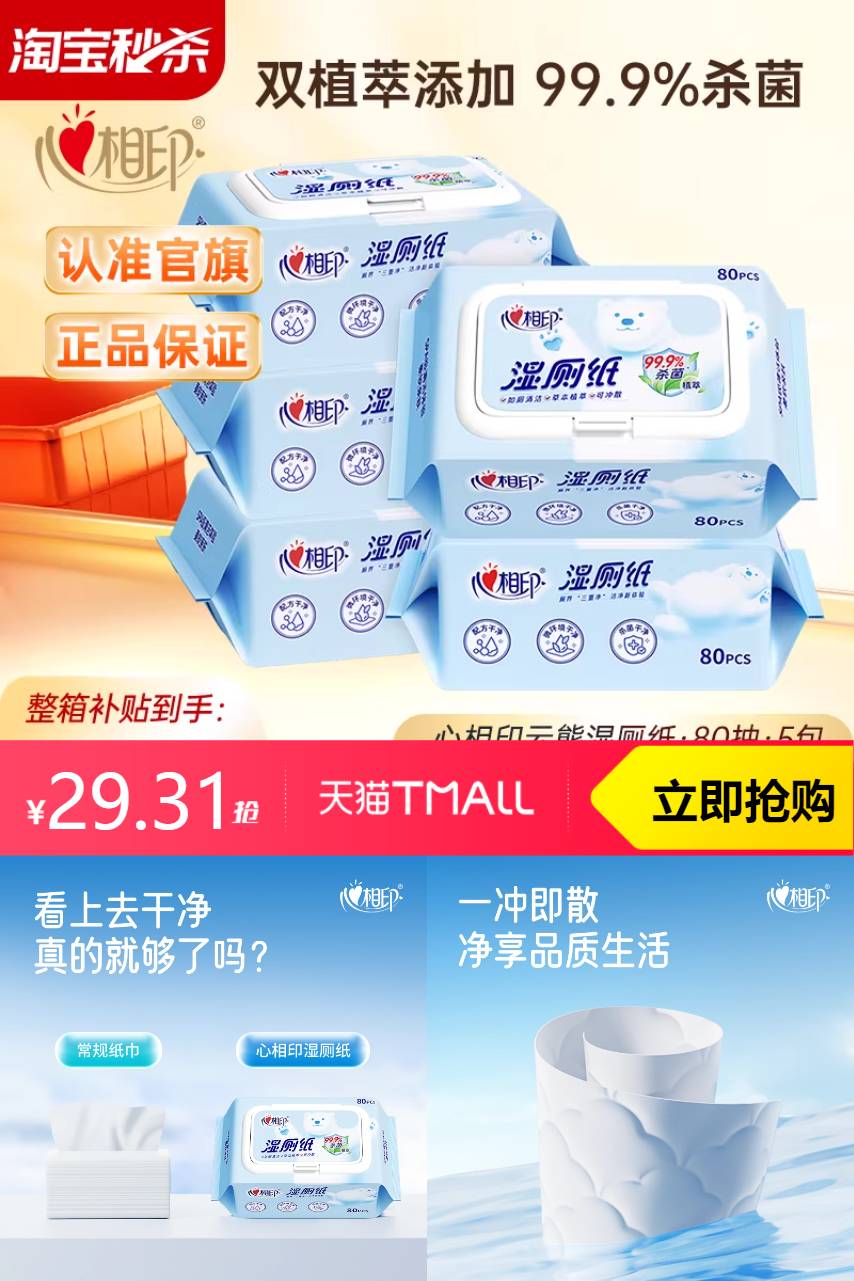 【下拉秒杀直降18.1,淘金币抵扣2.49.到手29.31】下拉秒杀补贴到手29.31,心相印官旗卖的最*好的湿厕纸大破价秒舒爽,深层除菌,超值分量,专业擦pp!有效抑菌,擦得更干净、更舒适,小宝宝也能用!