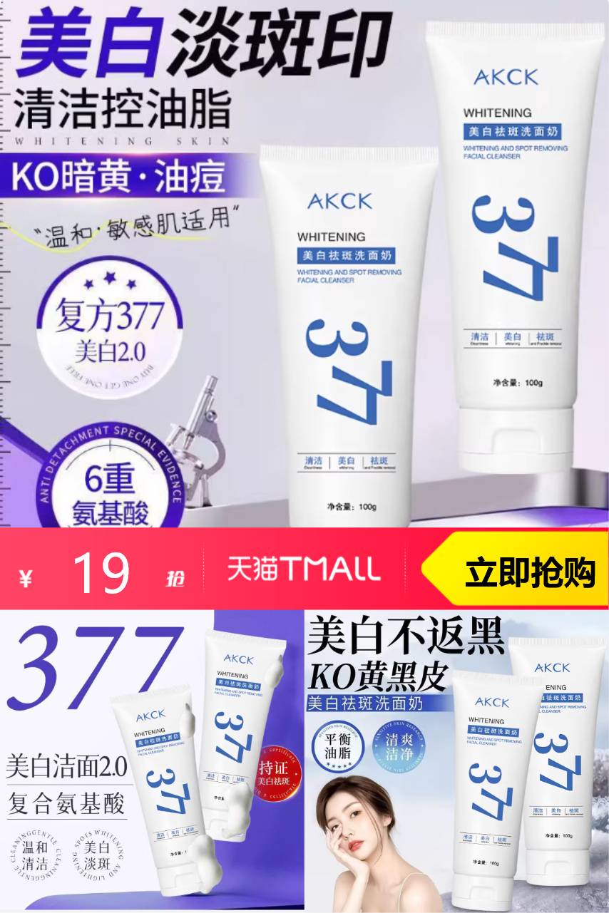 【满59减40的券,到手19元3只】AKCK美白377清洁洗面奶100g*3,超划算!