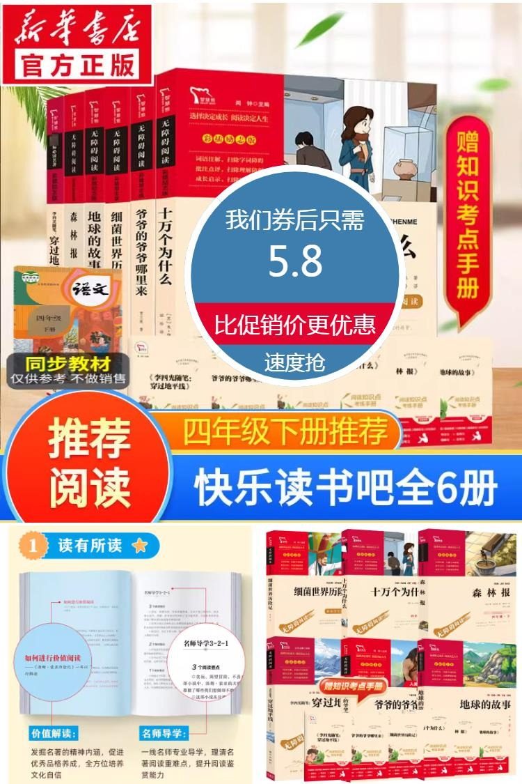 【赠知识考点手册】四年级下册推荐快乐读书吧全6册,书目参考教材,版式疏朗,插图精美,字大清晰,无障碍阅读,专为学生设计!小学生假期必读课外书!
