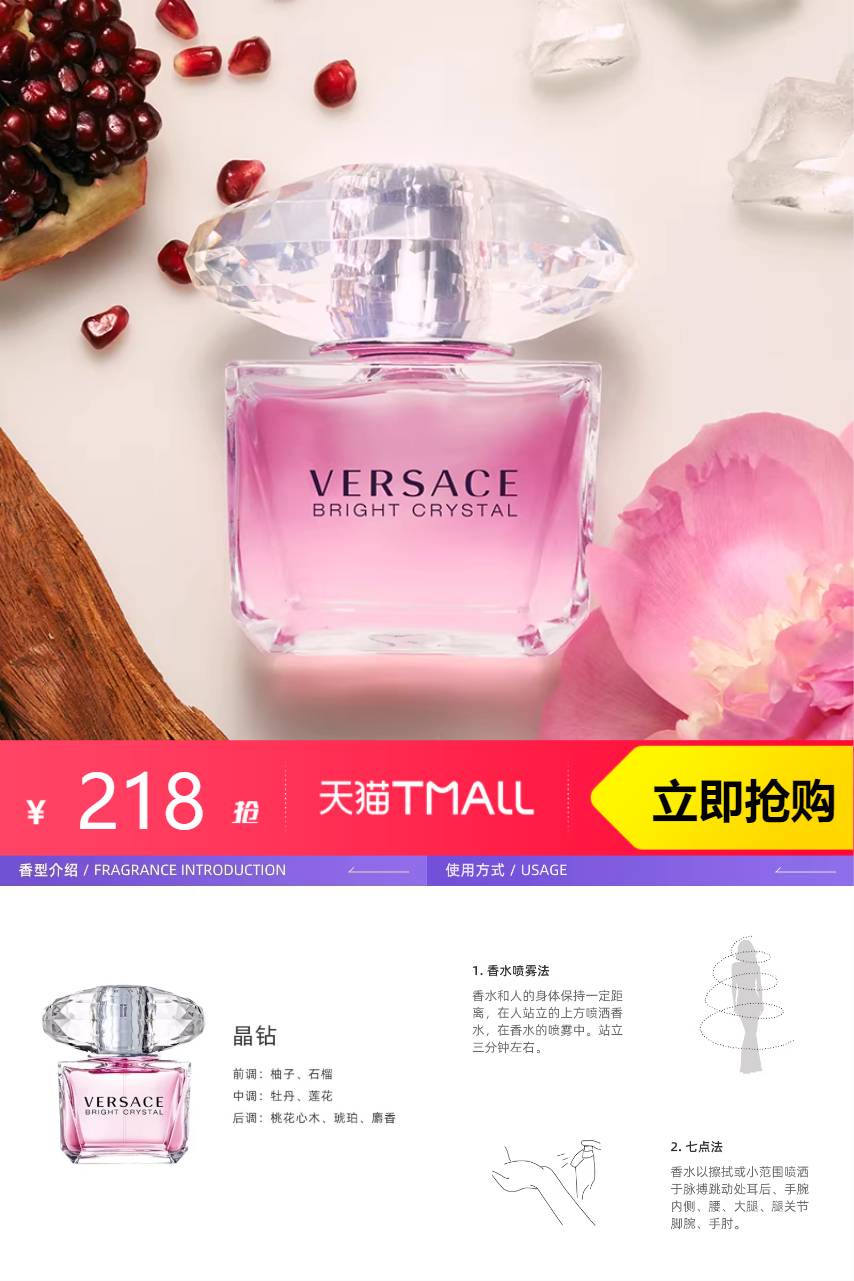 【百亿补贴减53】侯明昊范思哲粉耀晶钻香水50mL,石榴籽和柚香悠然地飘出,沁心饱满,冰爽清新,继而是白玉兰、牡丹和莲花的芬芳,魅惑十足,清新纯粹然后是细腻的琥珀木香,令人忘情。