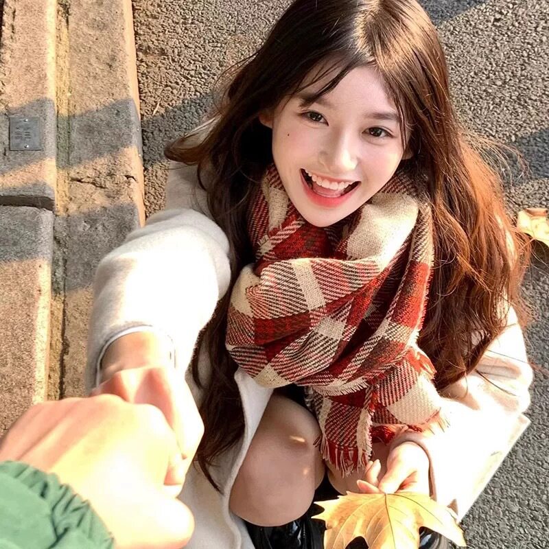 推荐:QY新年圣诞礼物红色格子围巾女秋冬季保暖氛围感百搭学生情侣围脖