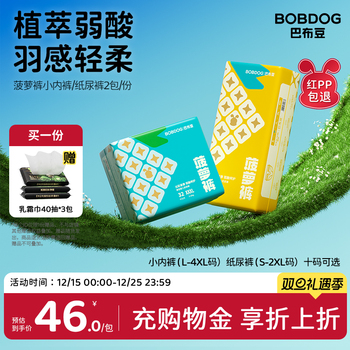 【右上角淘金币入口52元,拍1发2】巴布豆新菠萝2包超薄透气纸尿裤拉拉裤尿不湿隔尿垫纸尿裤婴儿!