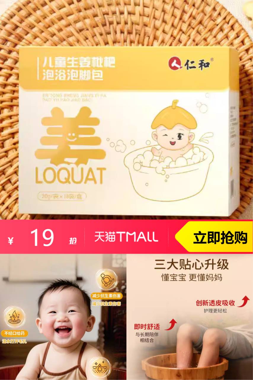 【立减6,9】仁和儿童生姜琵琶泡脚婴幼儿宝宝泡澡药浴驱,三大贴心升级懂宝宝 更懂妈妈 创新透皮吸收,护理更轻松~
