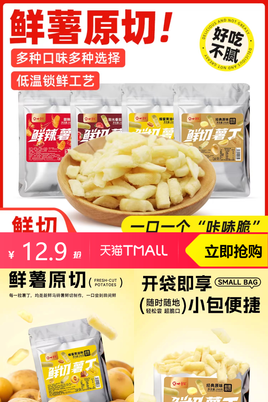 【淘金币抵0.6,最终到手价12.3】还得是原切薯条!真的难以超越!用的是新鲜马铃薯!表面都是粉,每一根都有浓郁的土豆香!口感是那种偏湿凉的,比薯片吃起来还过瘾,某东一包就13块!【赠运费险】