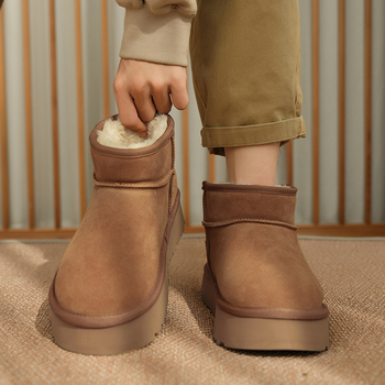 环球厚底棉鞋雪地靴男士冬季加绒保暖2025新款防滑皮毛一体短靴冬