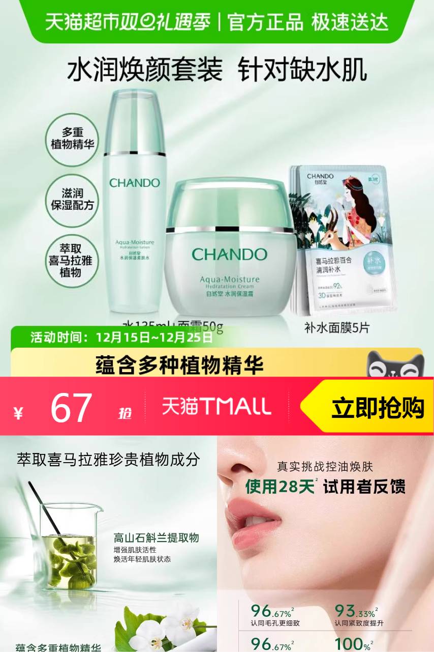 【每天10点,页面价109-立减34-券8-淘金币8.87-88vip95折3.35-淘礼金6.7=48.08元,叠加200-25消费券到手41.3元。】自然堂水润呵护,水乳双重呵护!清爽质地,贴肤更舒适。保湿效果,惊艳肌肤!面膜滋养,滋润更持久。