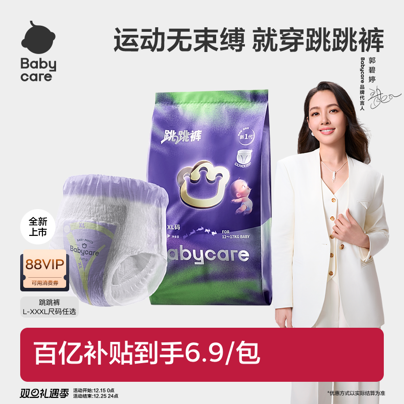 推荐:【新品】babycare跳跳裤拉拉裤超薄透气婴儿尿不湿试用装3片装
